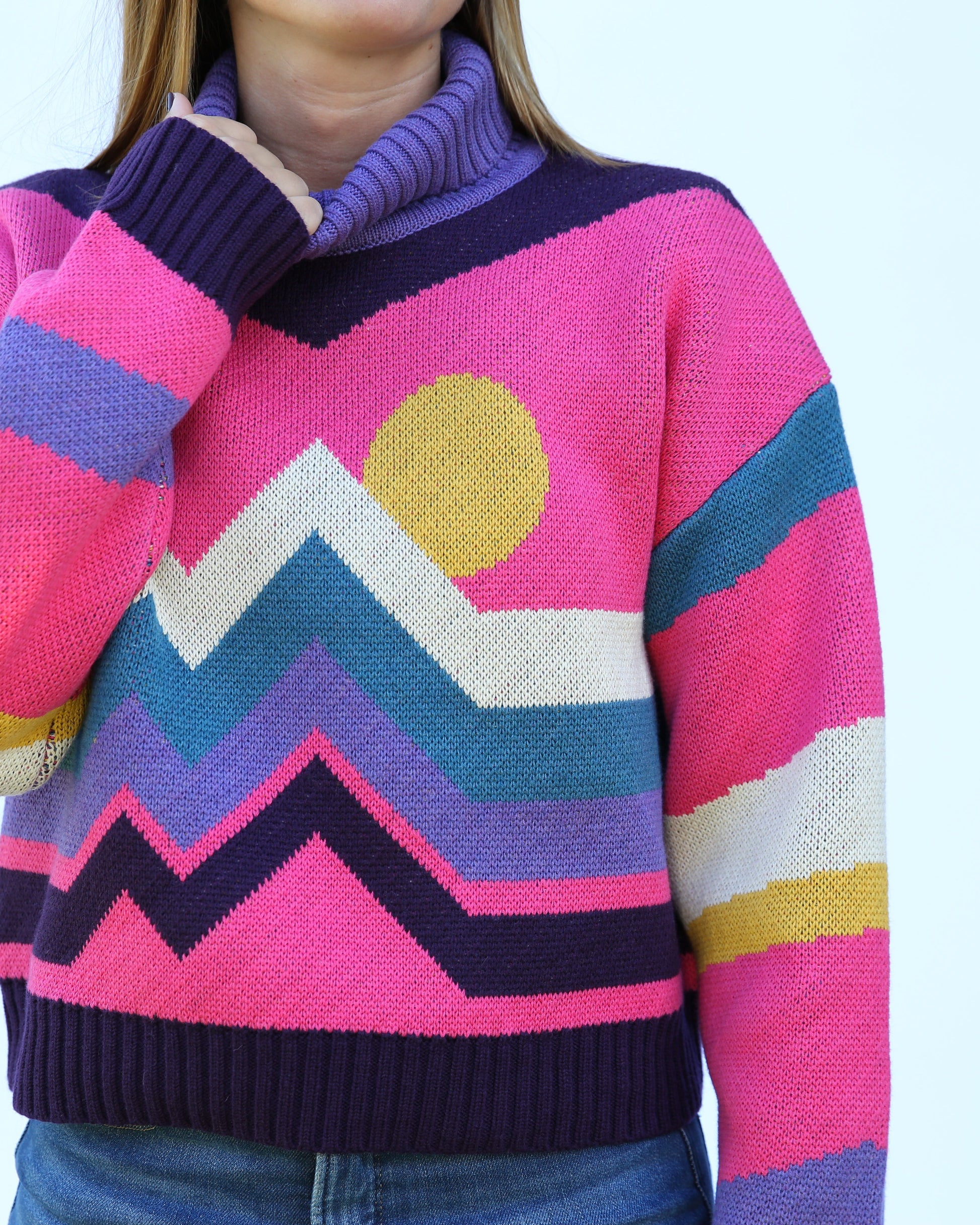 Wool blend fold over turtleneck inspired by 80's and 90's Ski Culture.